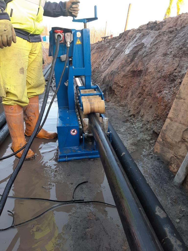 Het traject is 6,9 km lang, en er gebeuren 6 kabeltrekken. Gelijktijdig worden er twee optische vezelverbindingen geplaatst in dezelfde sleuf (één per draadstel).