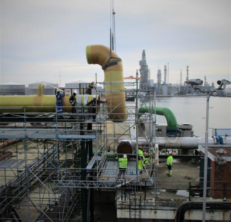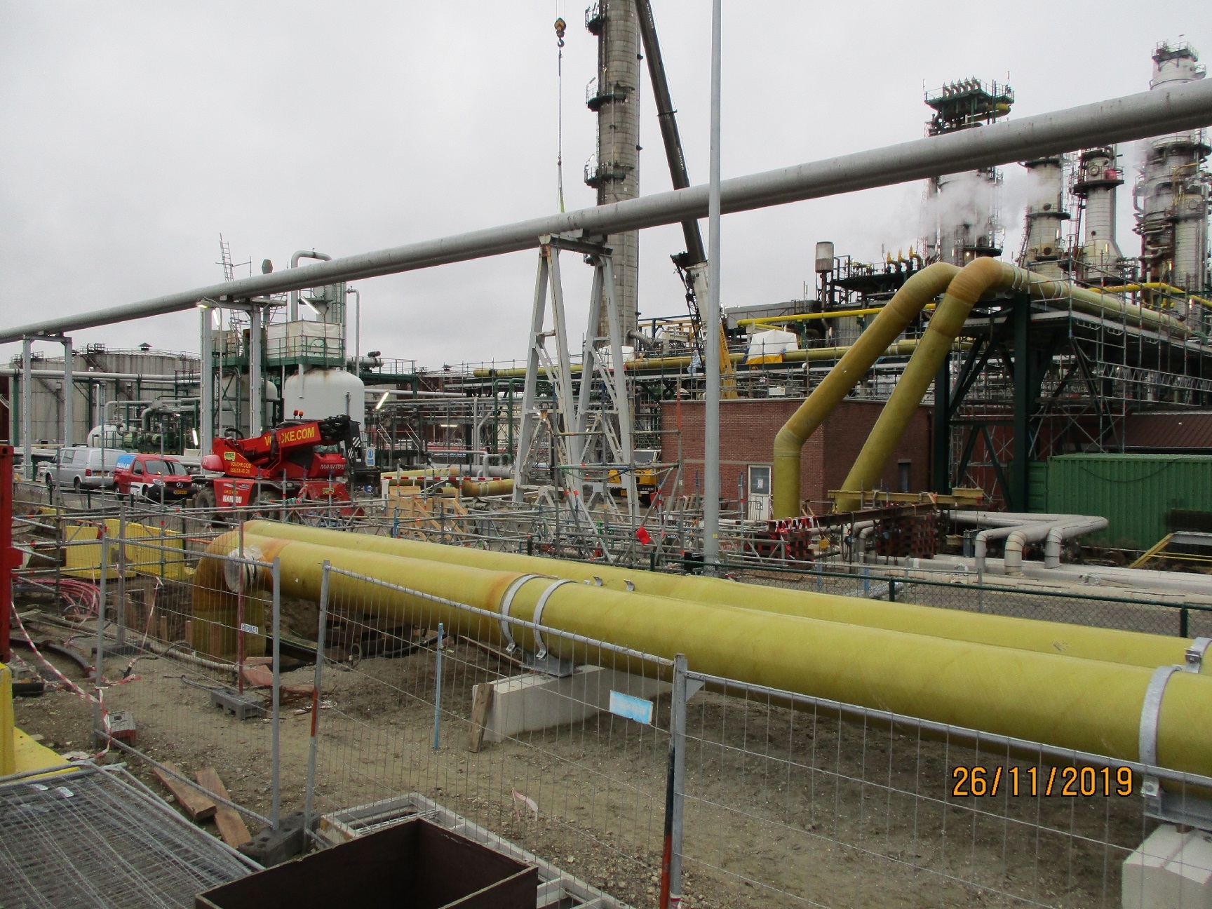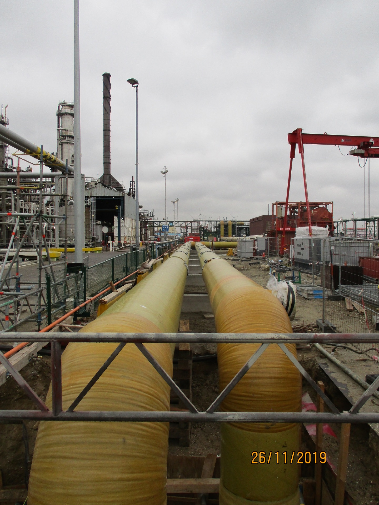 Op de site van Total in de Antwerpse haven wordt momenteel een volledig nieuw netwerk van glasvezelversterkte epoxy kunststofbuizen (GRE) aangebracht. Deze gaat het oude netwerk deels vervangen. Het gaat over grote diameters, op hoogte werken in een brownfield. We kregen het voor mekaar.